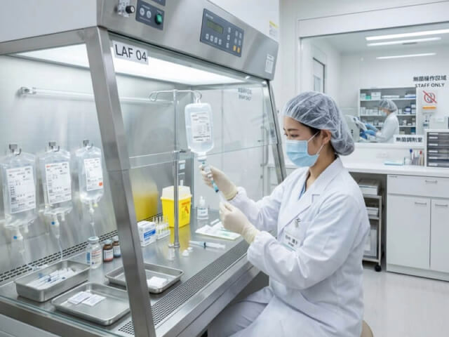 全店舗にクリーンベンチを設置。高度な衛生管理下で点滴や注射剤の調剤が可能です。